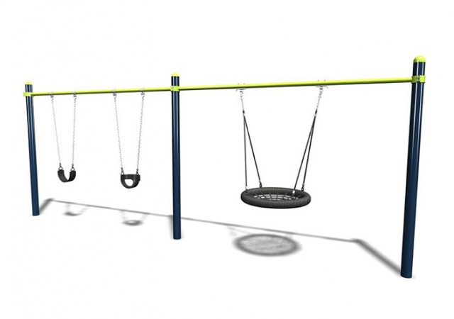 Products – Swings Our range of quality playground equipment is manufactured in Australia to current Australian standards. All our equipment ranges are customisable to suit your specific needs, location and budget. Omni Swing 2 Bay FHF: 1.6m Soft Fall m2: 70sqm